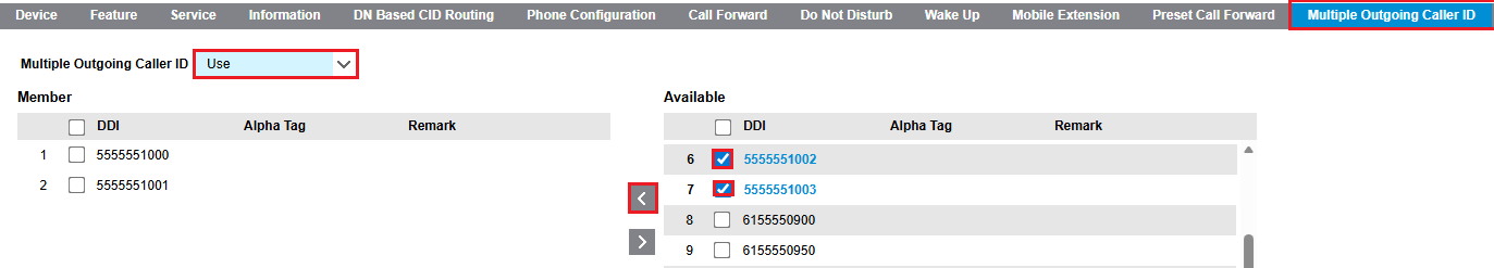 - Set Multiple Outgoing Caller ID to 'Use'.